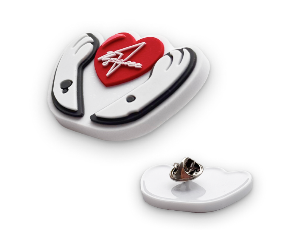 - Легкость и комфорт: ПВХ-значки практически невесомы, что делает их удобными для ношения на легких тканях.